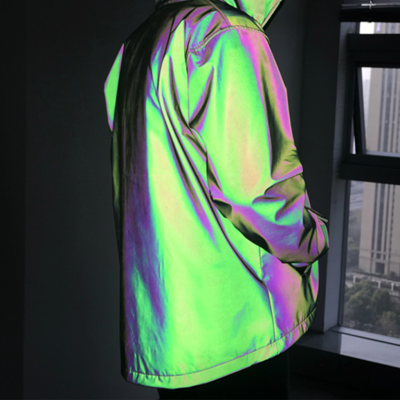 星华反光专注创新和产品定制开发, 将反光涂层技术应用于各种时尚面料, 如针织、弹力、皮革面料等。 炫彩反光布又称幻彩/七彩反光布,在夜晚灯光照射下可呈现如彩虹般渐变色,其出色反光性能的同时又兼顾色彩多样性, 可广泛应用于各类休闲服饰及户外用品等领域。